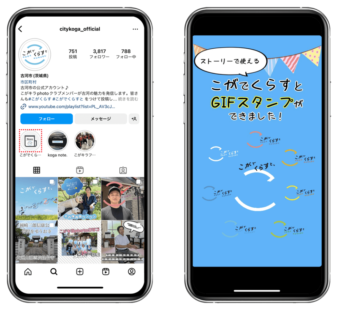 古河の魅力的な写真を「こがくらす」GIFスタンプで素敵に仕上げたストーリーズを投稿してください。