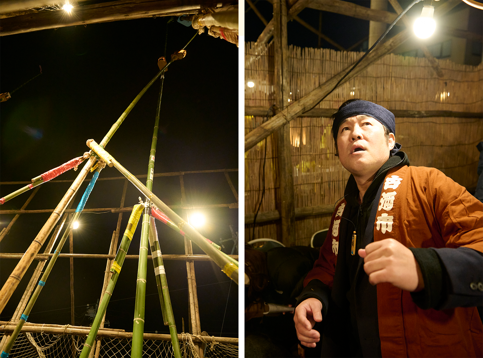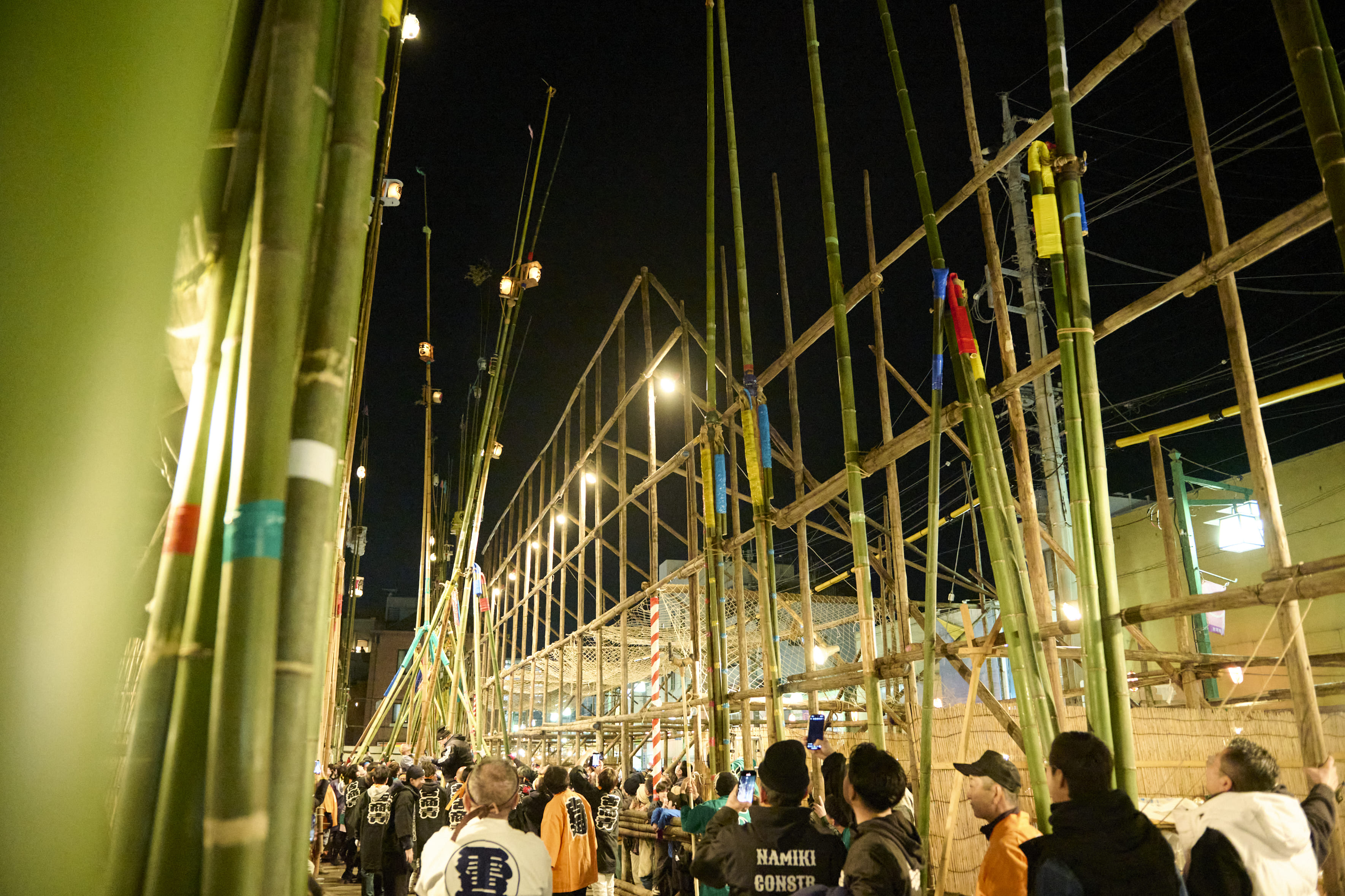 空を見上げれば火が灯った提灯が激しく揺れ、地上では人々が声を掛け合いながら重くしなる竿を倒さないよう、他のチームに攻撃を仕掛けていきます。